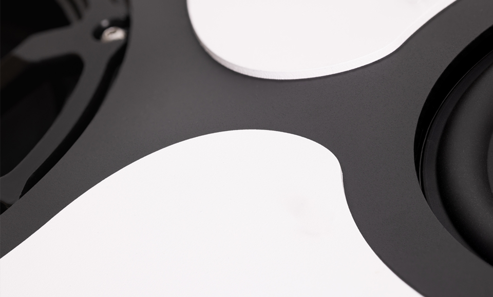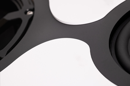 Bold, modern, and sophisticated, the Oryx speakers are designed to be a statement piece in any space. The striking aluminium faceplates, available in white on black, complement the meticulous hand-built construction, blending art with superior acoustic performance.